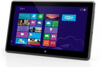 Vizio Company uses AMD Z-60 (1.0 GHz) Hondo generation tablet with a screen size 11.6 with a resolution 1080p, running Windows 8. Two gigabytes of RAM are complemented by SSD 64 GB, there are two-megapixel camera, micro- HDMI and micro-USB.