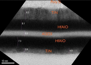 As the interlayer insulating layer, a combination of aluminum oxide (Al2O3) with low dielectric constant (low-k) and two "wrappers" combination of layers of aluminum and hafnium oxide (HfAlO), which are characterized by high dielectric constant (high-k ). High-k/low-k/high-k-izolyatora layer, according to IMEC representatives , "shows excellent results in terms of reliability and retention of the charge."