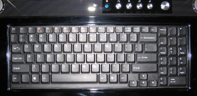 Above this screen, we note the presence of small webcam discrete with 1,3 megapixel .The keyboard is well fetched since Alienware benefits from space available to propose true one:the manufacturer could integrer a complete keyboard with 105 keys.Above the keyboard, we finds the traditional function buttons which in particular make possible to regulate the light of the screen,and to activate /deactivate/ launch various applications.