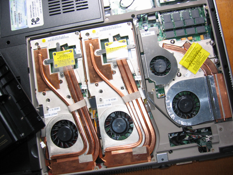 the manufacturer chose a RAID of two hard disks 2,5 inches.Configurable RAID can be produced using discs 120 GIG 5400 rpm.or 100 GIG 7200 rpm for optimal performances.All seems to ok on this mALX since the graphic solution was made by the technology SLI from NVIDIA with two GeForce Go 7900 GTX…these two card has 256 Mb video memory, say a total of 512 MB of video memory!However, Alienware did not forget the small details which could wast the integration of this SLI and