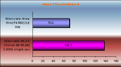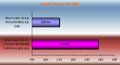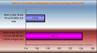 Return To Castle Wolfenstein:Enemy Territory and Unreal Tournament 2003.In a case as in the other, the passage from the GeForce Go 6800 to the SLI of GeForce Go 7900 is not justified at all in the measurement since borth video card are capable to provide playble frame rate in all resolution.The SLI obtain a substantial profit under Unreal Tournament 2003 .Before contuning with other tests, let us note that with Alienware Area-51m, the processor of the mALX seems to give a