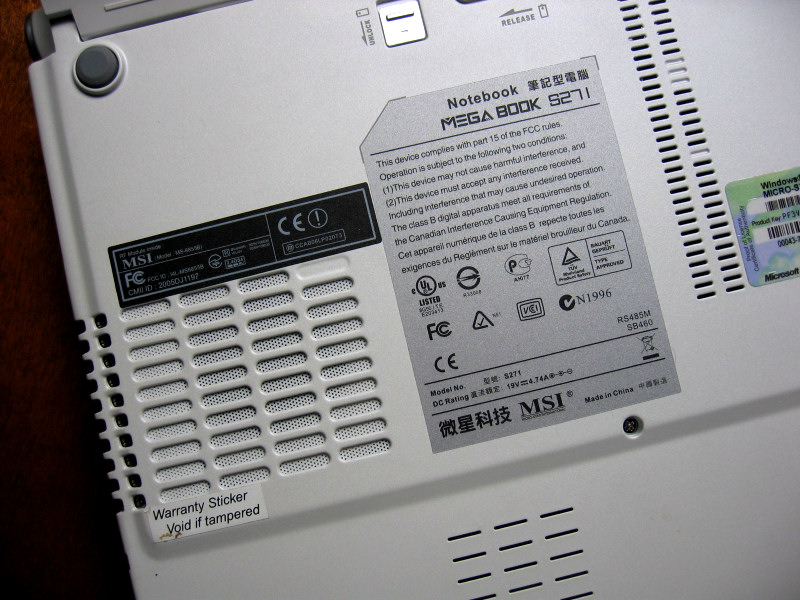 - MSI S260 (Pentium M 730, 1,6 GHz, 512 Mo RAM, graphic chip i915GM)