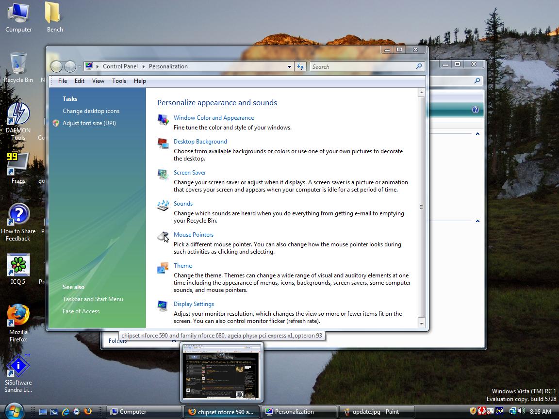 One of the most visible update that come with Windows Vista is due naturally to its graphic interface Aero Glass. It acts besides the functions which made run application using the capability of 3d graphics chip. And to benefit from the new interface effects which are windows animation or their transparency it is necessary to have a graphics card of type DirectX 9.0 having in addition compatible WDDM driver. Concretely, the cards of type GeForce FX 5200 and Radeon 9500 or higher are compatible with Aero. Of course Vista for those witch dont have a capable video card offer the two old clasic theme. In a word, these are even two reduced interfaces which are available: Vista BASIC which is rather close to the interface XP and Traditional, which remind the Windows 2000 interface.we had done on this review benchmark with will show the Aero Glass vs classic in term of system performance .to check how much system resource will this aero theme use.