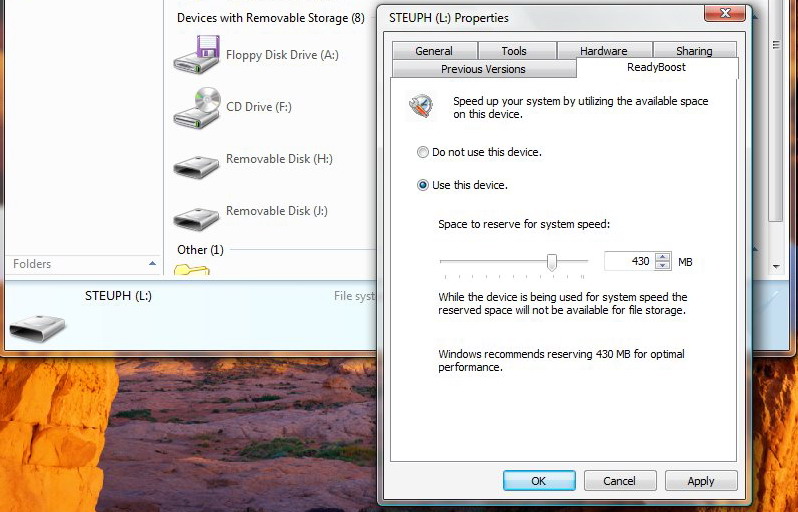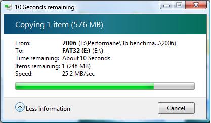 Other improvements were made and according to Microsoft, the access times reports in reading are faster. A new mechanism of page file defragmentation aims to the maximum system performances, plus the SuperFetch technology. It is question here of offering to the applications a kind of intelligent memory hiding place , functioning according to special algorithms\' witch able to create specific profiles by application and type of use. SuperFetch can use as storage section the external peripherals like USB drive in order to accelerate the launch of applications , which Microsoft named as ReadyBoost. Remain that according to the type of USB drive used the access times can vary, which can seriously hurt the performances. This is why ReadyBoost do a fast test to the usb drive to determine if this one is usable . Microsoft require at least of 256 mb of free space with a flow of 3,5 Mb/s in reading and 2,5 Mb/s in writing. It should be noted that Microsoft stores data in an encrypted way on USB, to avoid any problem of confidentiality.