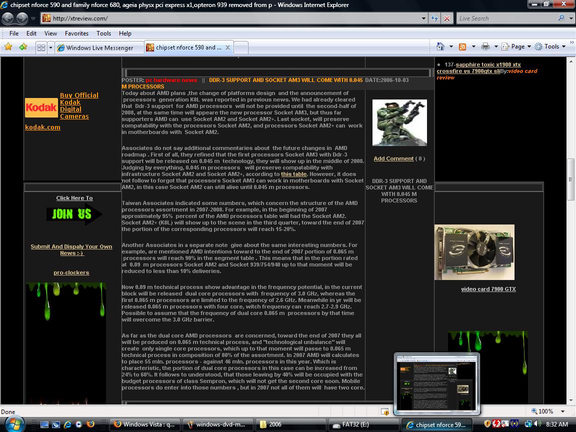 Side memory read write and latency borth system have here about the same result.windows vista got slight advantage in memory copy but windows xp take the lead in memory read and write benchmark .the two operating system has the same memory latency according to everest 2006