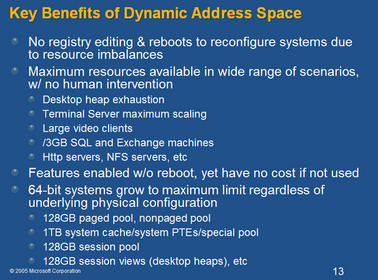 Contrary to Windows XP which was only one simple evolution of the core Windows 2000, Windows Vista benefits from a very new core. The core is in some extent the main part of the operating system since it manages inter alia things the accesses to the memory, or requests of various system peripherals . Vista thus introduces the core NT6 and in the level of the major update we notes a dynamic addressing system report. Under XP, certain memories place were allocated in a static way and their reconfiguration required a modification of the registers base and as it should fellow restarting the system, which occurred in particular with the installation of system driver. Vista thus puts a term at this and naturally proposes a mechanism of access report protection , mechanism inherited the Service Pack 2 of Windows XP. Concerning the maximum of memory addressable, Vista proves to be identical to XP. The edition 32 bits of the system can support up to 4 Gig of memory when the version 64 bits goes up to 128 Gig of read-write memory. In another register, the Bit Execute function available on processors AMD and INTEL of last generation is supported and Windows Vista has the capacity to mark certain memory zones in reading only to avoid possible corruptions. Small update, the system integrates a tool for memory diagnosis , accessible with the start menu , just to check the good state of your memory