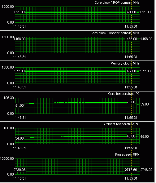 The following 612 MHz step of overclock GPU is equal to 648 and for the stable work at this frequency it was necessary to reduce temperature or to increase volatge on GPU.