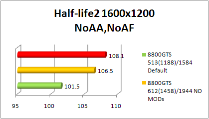 On both tested video cards Chaintech geForce 8800 GTS the limit of overclock GPU was reached without change in the frequency of shader block. After the replacement of cooling in both frequencies GPU increased by such value, which again has no need to change the frequency of shader block in BIOS. It is completely possible that everything can prove to be different on other copies geForce 8800 GTS/GTX, but spend time on such fine adjustment of both frequencies GPU stands only when you have a sufficiently powerful CPU. Otherwise you can simply not note any difference between the work of shader block in 1566 or 1620 MHz.