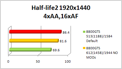 On one geForce 8800 GTS a change in the latency did not bring anythinks, but on other copies with the less successful overclock in the frequency memory, it is completely possible that reduction in the latency will give small addition in performance.