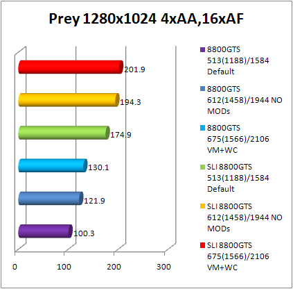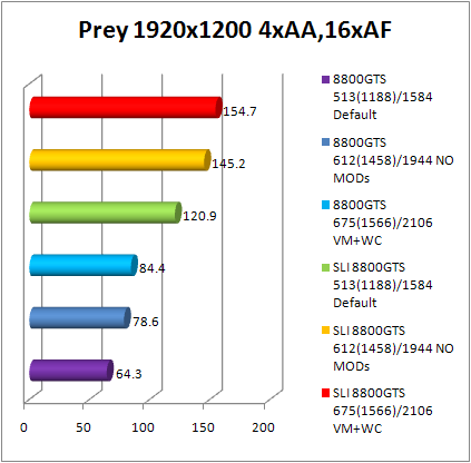 It was explained during previous review that the performance do not at all increases in Prey version 1.0.103 with regime SLI, but it is even lower . This problem disappeared after the installation of patch and update to version 1.2.116. But two powerful video card in this game are not necessary, it is evident according to the results of testing that it is completely sufficient one 8800 GTS for the game in any regimes up to 1920x1200. Dual core processor AMD is also sufficient.