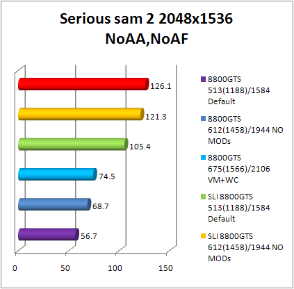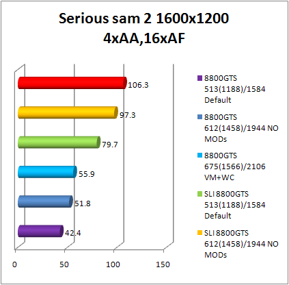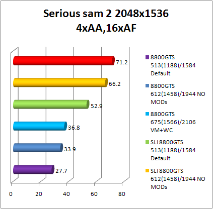 In order to load one or even two 8800 GTS in Serious sam 2 its not required to get faster processor than Athlon 64 X2 @ 2900 MHz. Already beginning from the resolution 1280x1024 the speed in the game is determined by video cards. On one 8800 GTS it is possible to play using 1280x1024 without overclock and in 1600x1200 if overclocked. With the use of regime SLI to play without brakes is possible with any resolution.