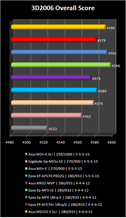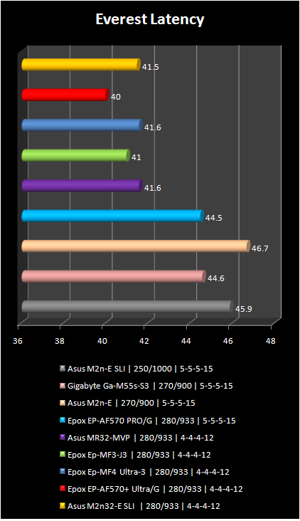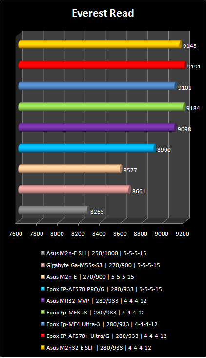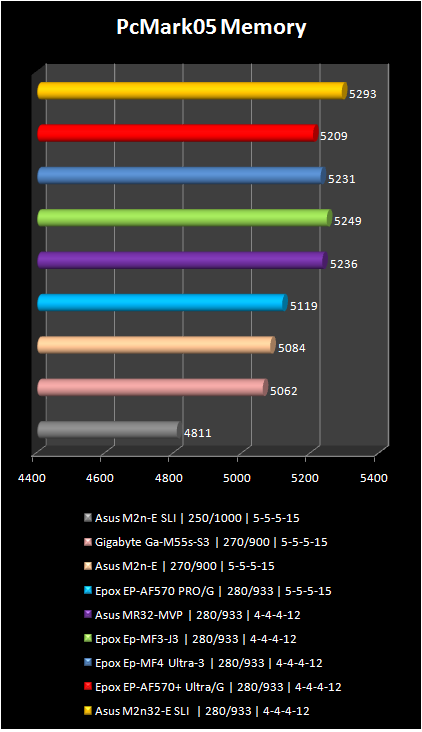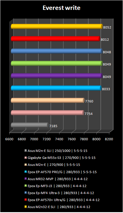 Due to the fact that the motherboards are practically identical, EPoX EP-MF 4- J3 repeated the results obtained earlier: 280/933 4- 4- 4- 12-2T .