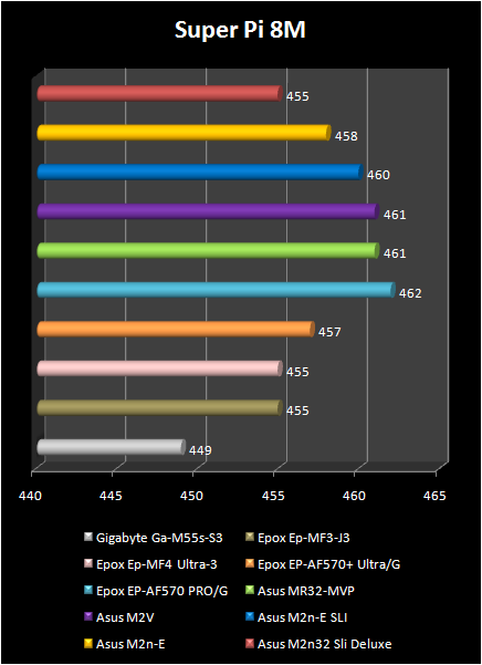 In Super Pi the best result was showed by motherboard gigabyte GA -M55S-s3.