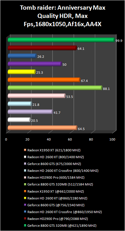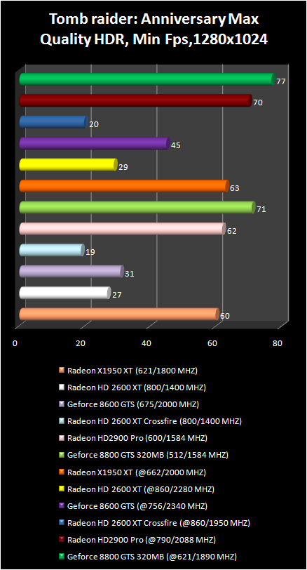 The absence of crossFire support by this game and the weak results Of radeon HD 2900 Pro make us assume that catalyst drivers are not optimized under Tomb raider: Anniversary, or its engine simply do not benefit from the new graphic processors architecture .