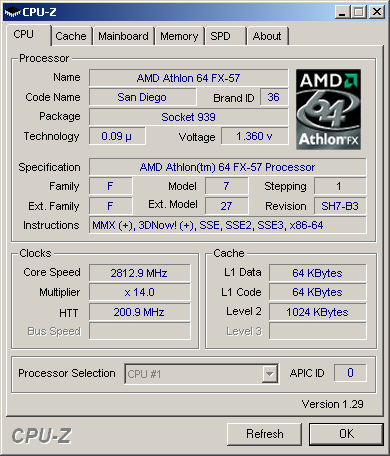 The formal specification of the Athlon 64 FX-57 is listed in the following table: