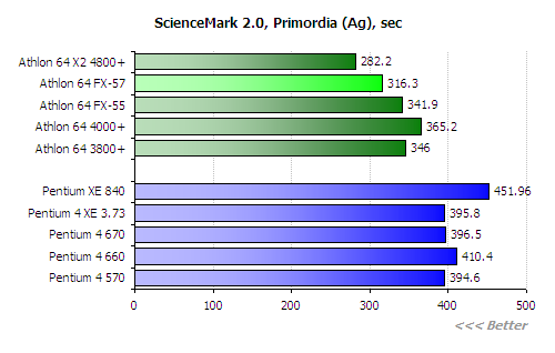 Did you expect anything else in mathematical modeling tasks? The high-performance FPUs of Athlon 64 CPUs leave no chance to the competing processors.