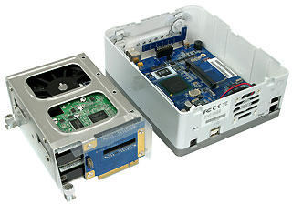 Inside the N2100 Box there is an Intel 80219 processor (exactly like that one that is used in most pocket PCs), two Realtek 8110 chips responsible for the network support, a flash memory chip and a SATA controller from Silicon Image. Let’s see what all these great things will do for us in real life.