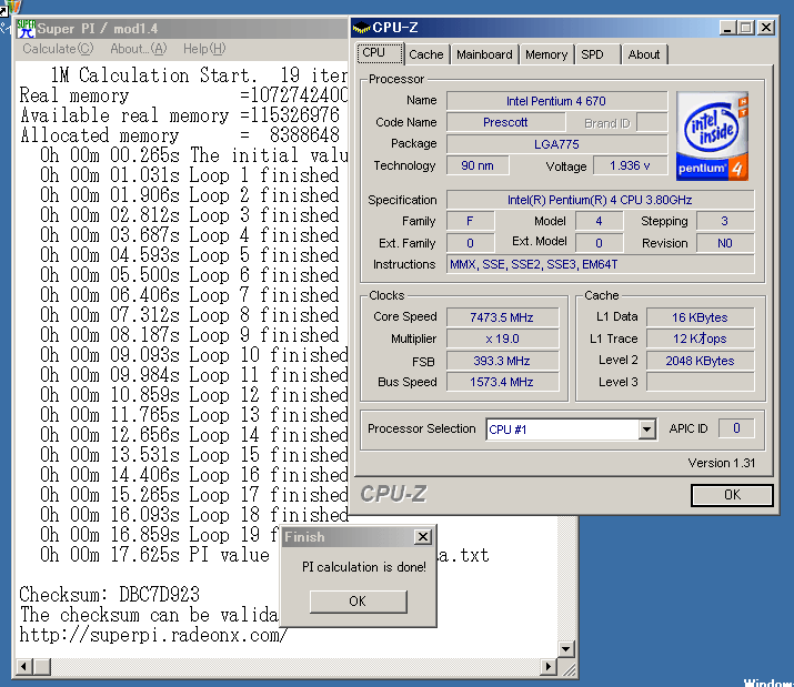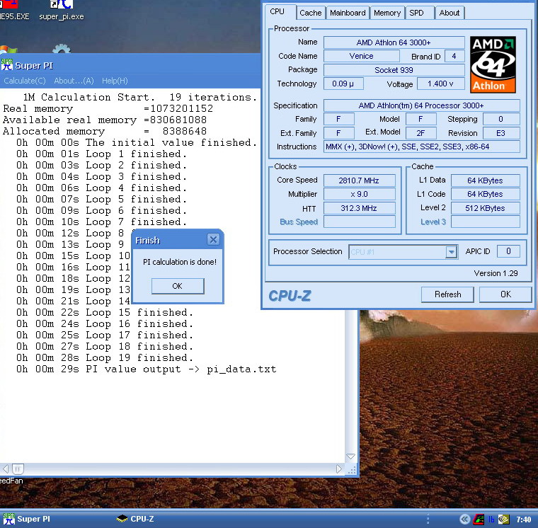 as u can see the overclocked intel conroe is getting awesome result in super pi benchmark . super pi do alwais well in intel platform.but even the fastest amd 64 could not catch up with those value.it is clear that intel conroe do more work per clock the fastest amd .clock for clock amd was alwais faster ,intel show us that this is not alwais true. another note the inetl conroe in coupled with 4mb cache with help a lot in super pi benchmark