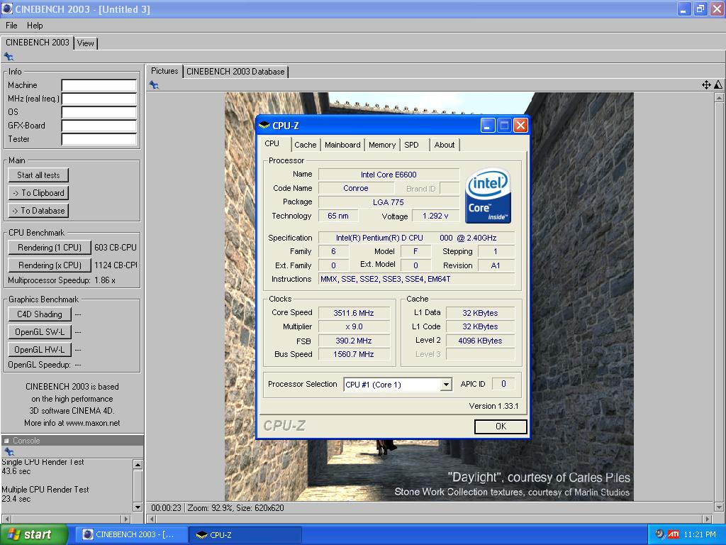 intel conroe Cine benchmark benchmark