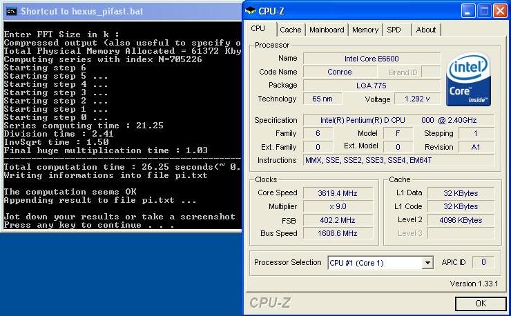 intel conroe pi fast benchmark